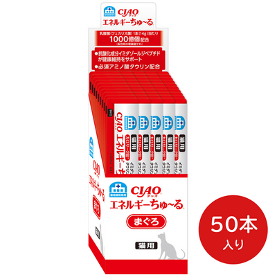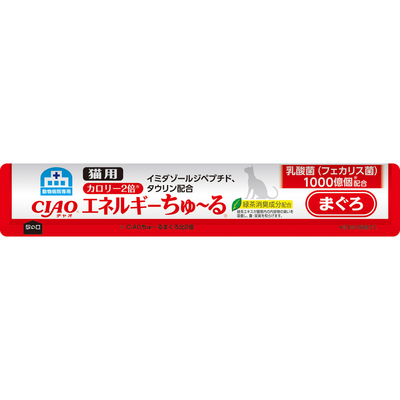| 原材料Ingredients | まぐろ、鶏脂、チキンエキス、糖類(オリゴ糖等)、まぐろエキス、魚肉抽出物、殺菌乳酸菌、植物性油脂、増粘安定剤(加工でん粉、増粘多糖類)、ミネラル類(Na、P、Cl)、調味料(アミノ酸)、ビタミンE、タウリン、紅麹色素、緑茶エキス |
