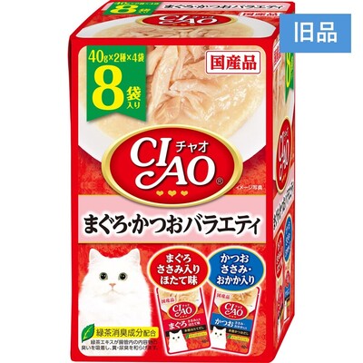 | 原材料Ingredients | 【まぐろ ささみ入り ほたて味】鶏肉(ささみ)、まぐろ、ほたてエキス、糖類(オリゴ糖等)、植物性油脂、増粘安定剤(加工でん粉、増粘多糖類)、ミネラル類(Na、P、Cl)、調味料(アミノ酸)、ビタミンE、トマト色素、緑茶エキス 【かつお ささみ・おかか入り】鶏肉(ささみ)、かつお、かつお節、かつお節エキス、糖類(オリゴ糖等)、植物性油脂、増粘安定剤(加工でん粉、増粘多糖類)、ミネラル類(Na、P、Cl)、調味料(アミノ酸)、ビタミンE、トマト色素、緑茶エキス |
